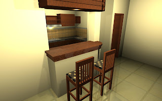 ini adalah hasil rancangan untuk ruang makan dan dapur yang dilengkapi mini bar